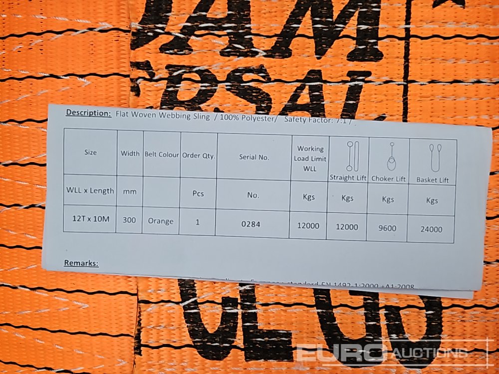 Unused Rydam 12 Ton x10m Flat Lifting Sling