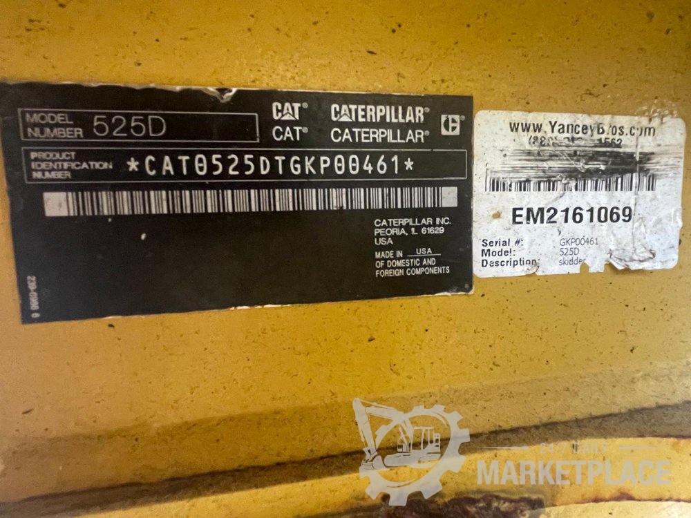 2016 CAT 525D 4x4 Wheel Skidder, 6-Cylinder 203 HP CAT C7.1 ACERT Engine, EPA Certified, Transmission Refurbished at 7,000 Hours (8,237 Hours) - CAT0525DTGKP00461