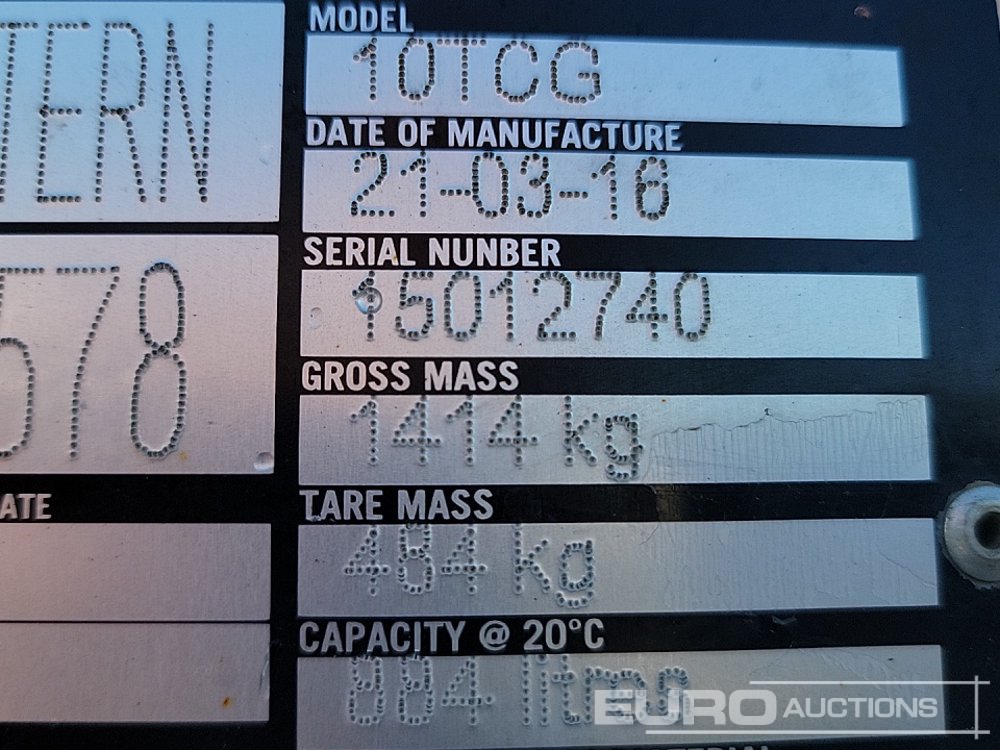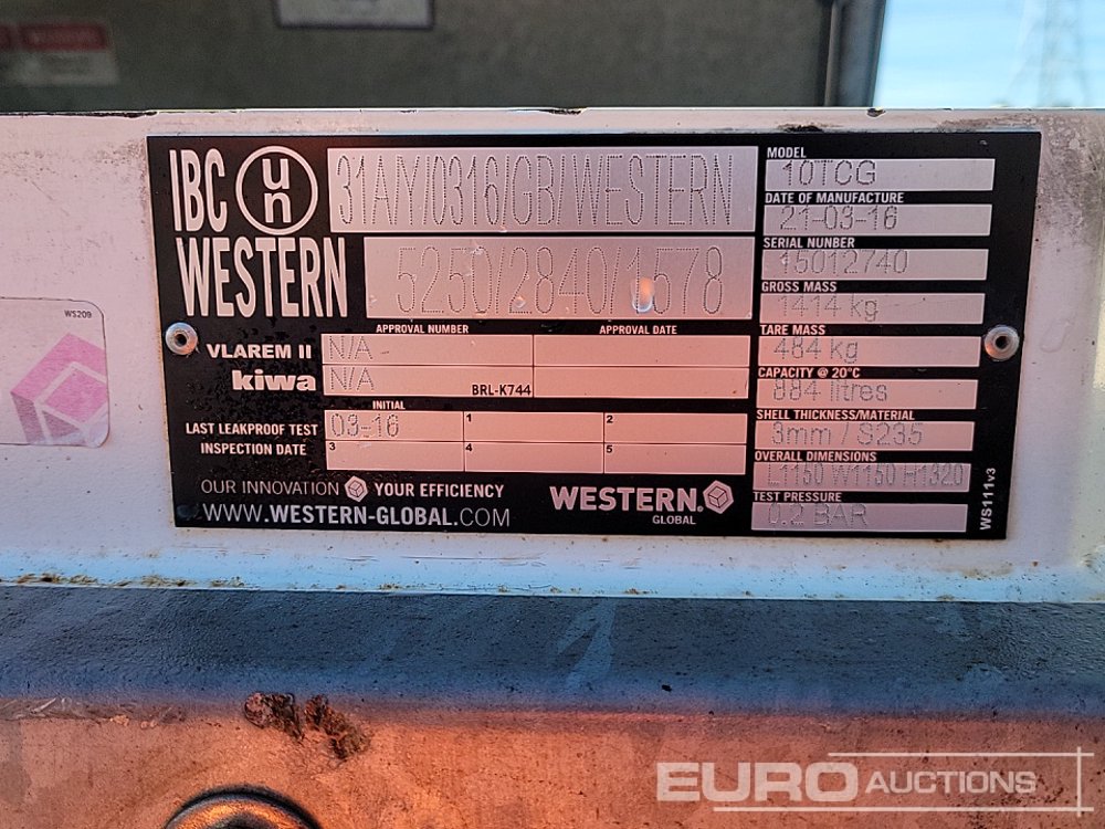 2016 Western 10TCG 910 Litre Static Bunded Fuel Bowser - 15012740