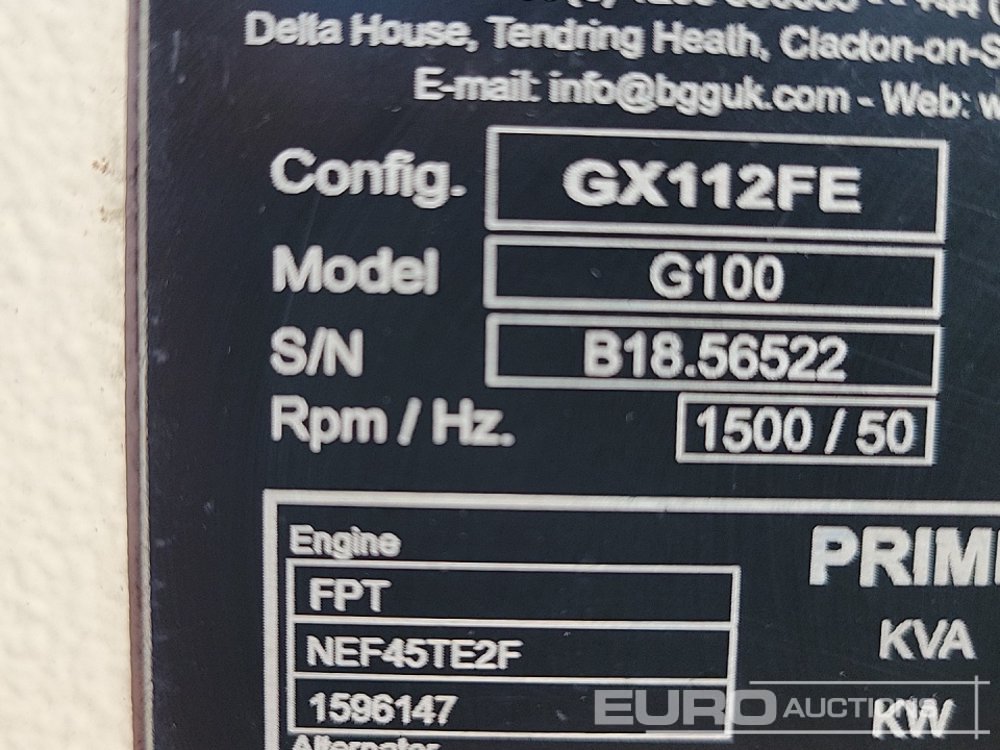 2018 Bruno G100 100kVA Generator, 4 Cylinder Engine - B1856522