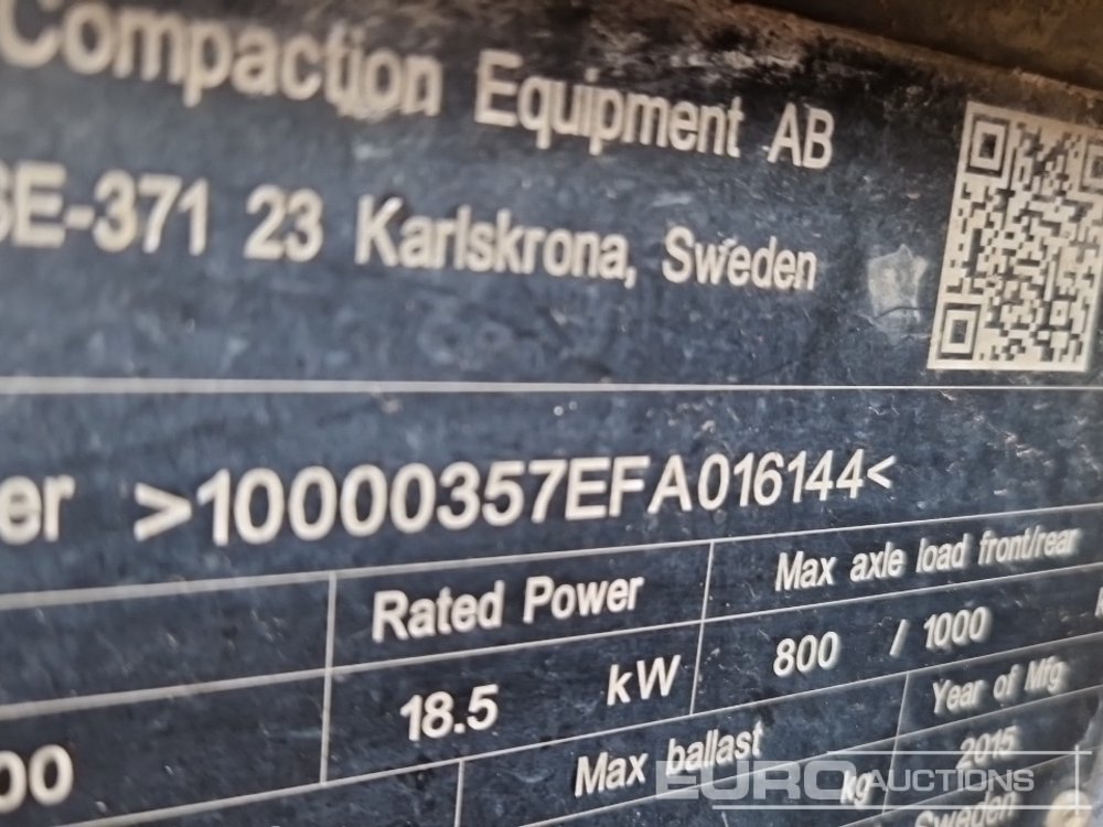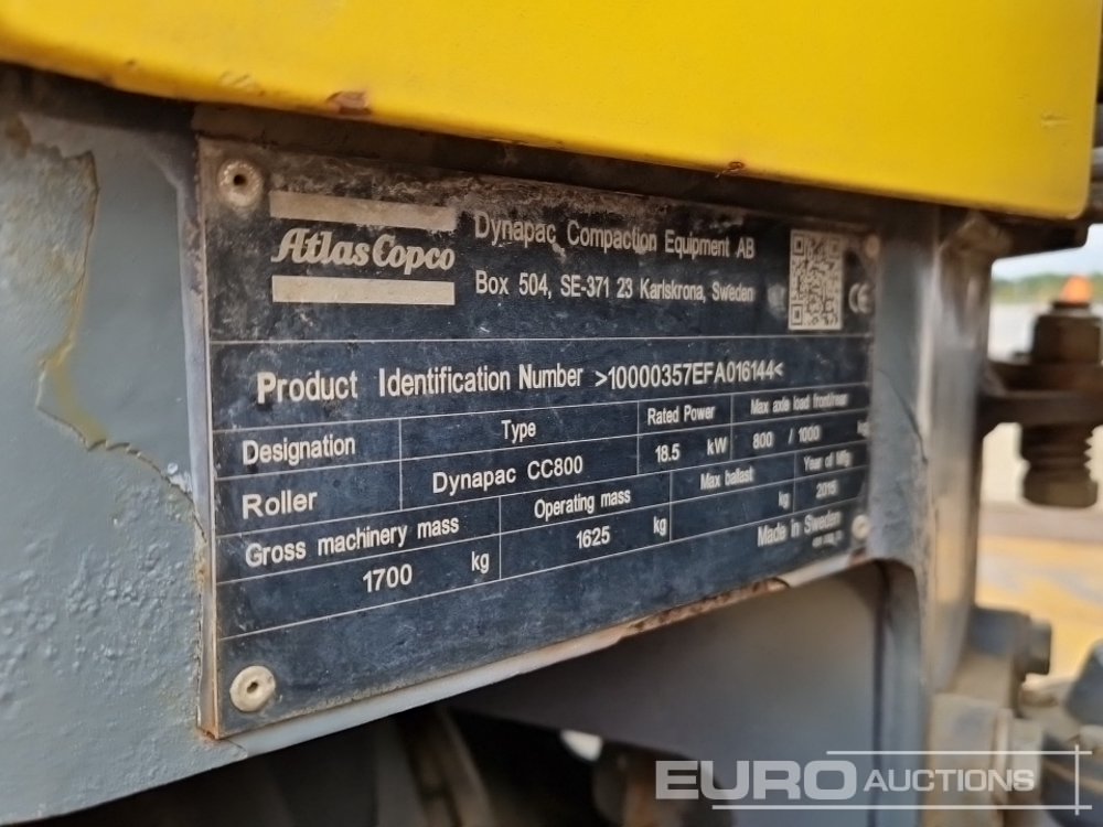 2015 Dynapac CC800 Double Drum Vibrating Roller, Roll Bar (Meter Reading: 418 Hours) - 10000357EFA016144