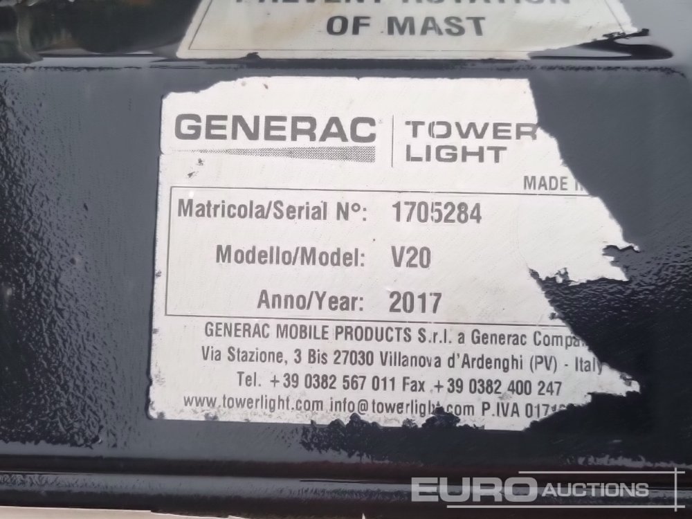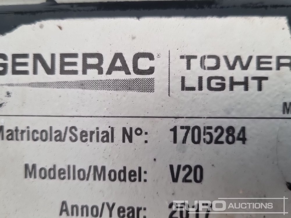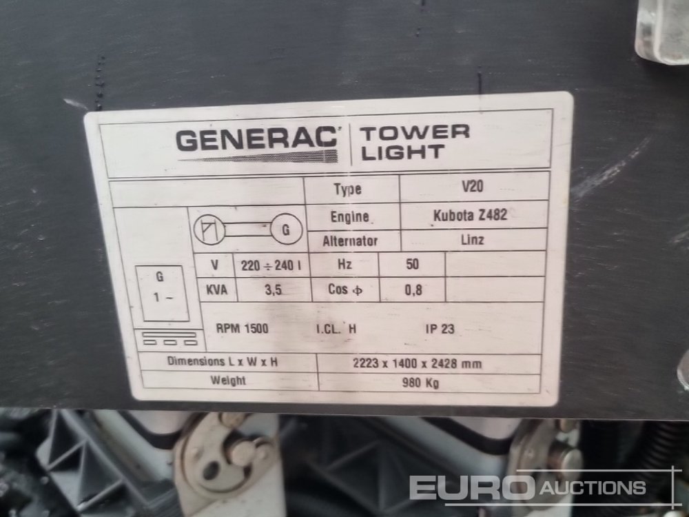 2017 Generac V20 Single Axle LED Lighting Tower, Kubota Engine (Parts Missing) - 1705284