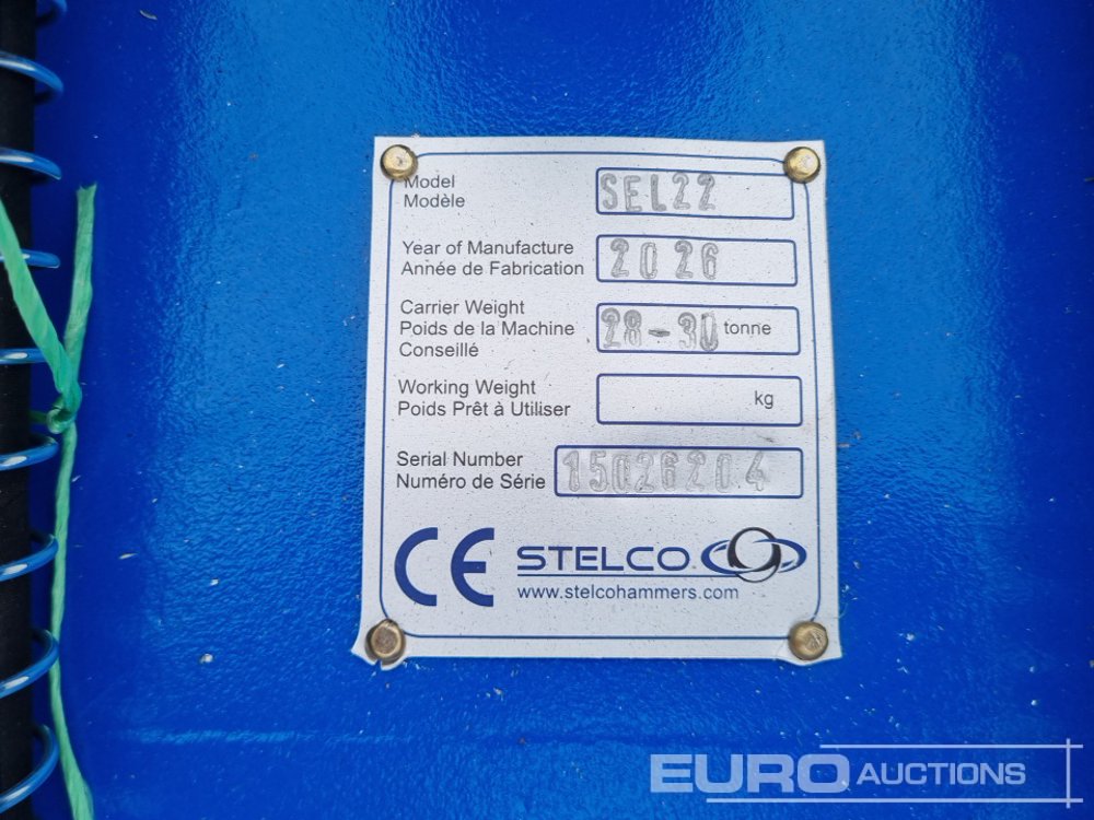 Unused 2026 Stelco SEL22 Hydraulic Breaker 90mm Pin to suit 30 Ton Excavator - 15026204