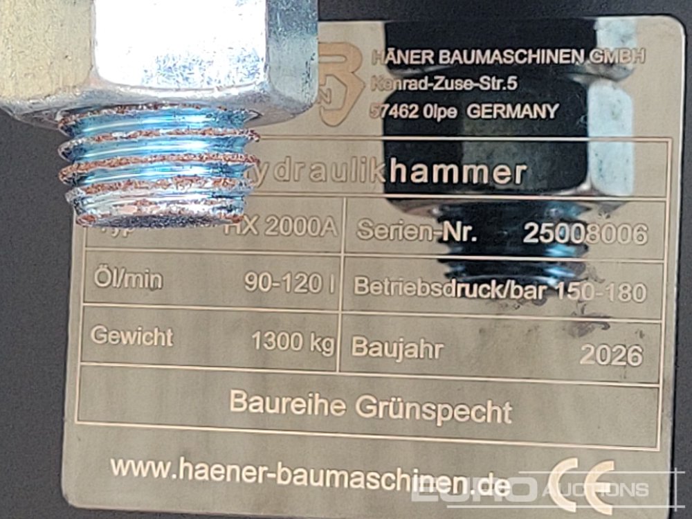 Unused 2026 Häner HX2000A Hydraulic Breaker 80mm Pin to suit 20 Ton Excavator - 25008006