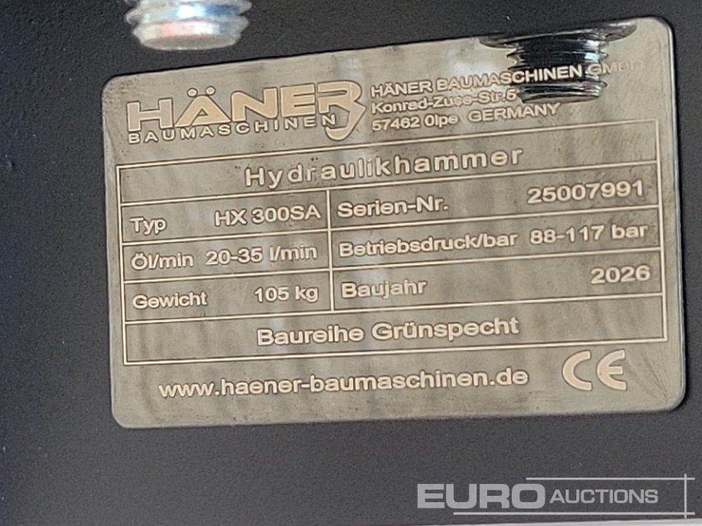 Unused 2026 Häner HX300SA Hydraulic Breaker 25mm Pin to suit Mini Excavator - 25007991