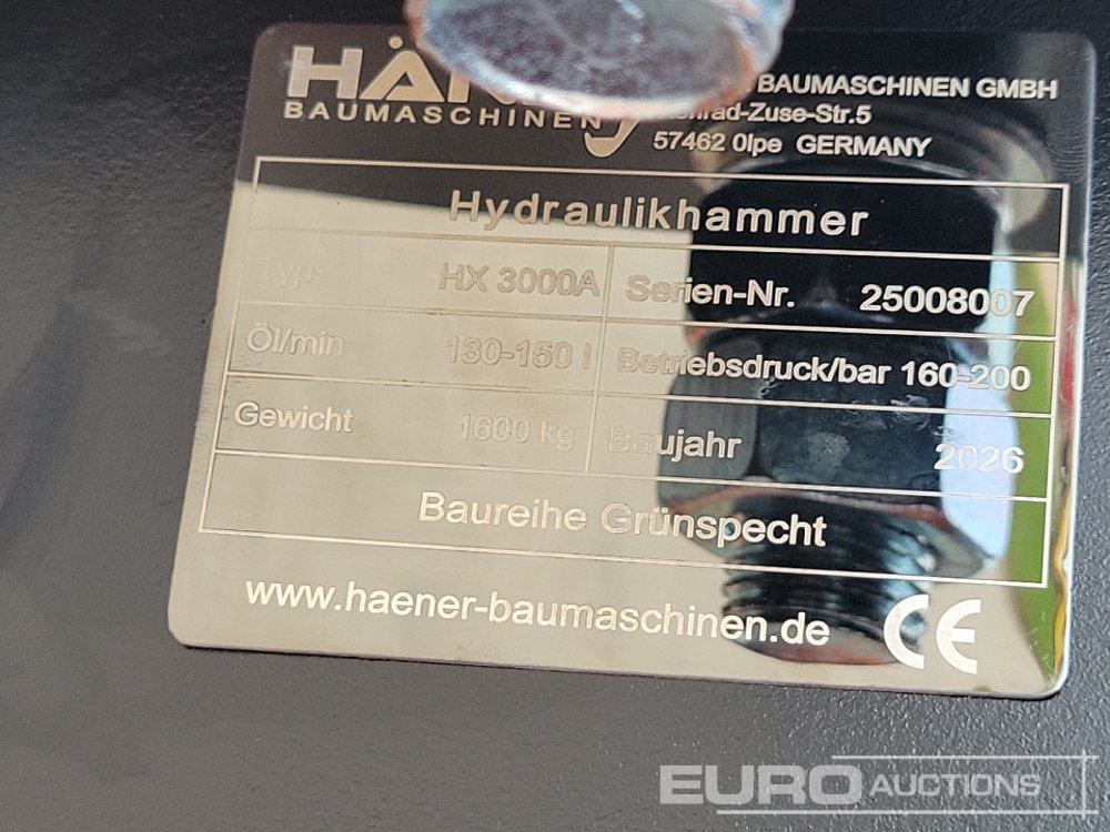 Unused 2026 Häner HX3000A Hydraulic Breaker 90mm Pin to suit 30 Ton Excavator - 25008007