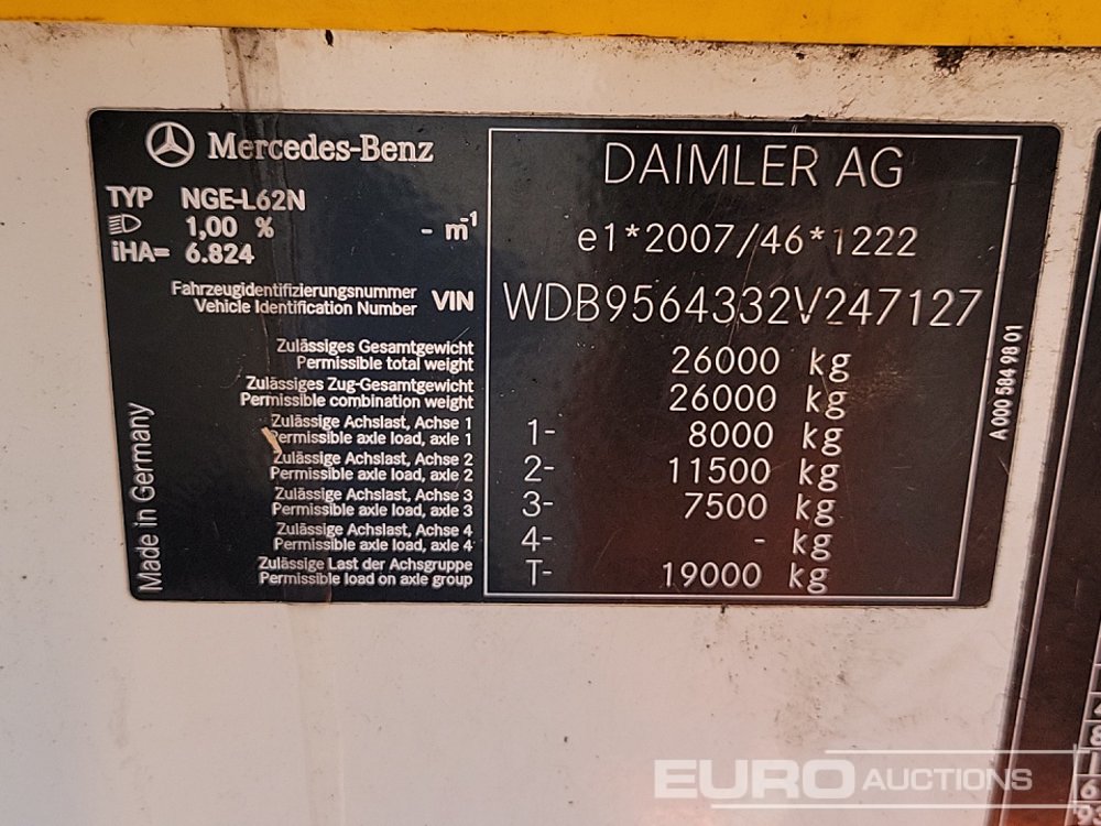 2017 Mercedes 2630 6x2 Rear Lift Chassis Cab, Rear Steer, A/C, Automatic Gearbox - DG17 AXF - WDB9564332V247127