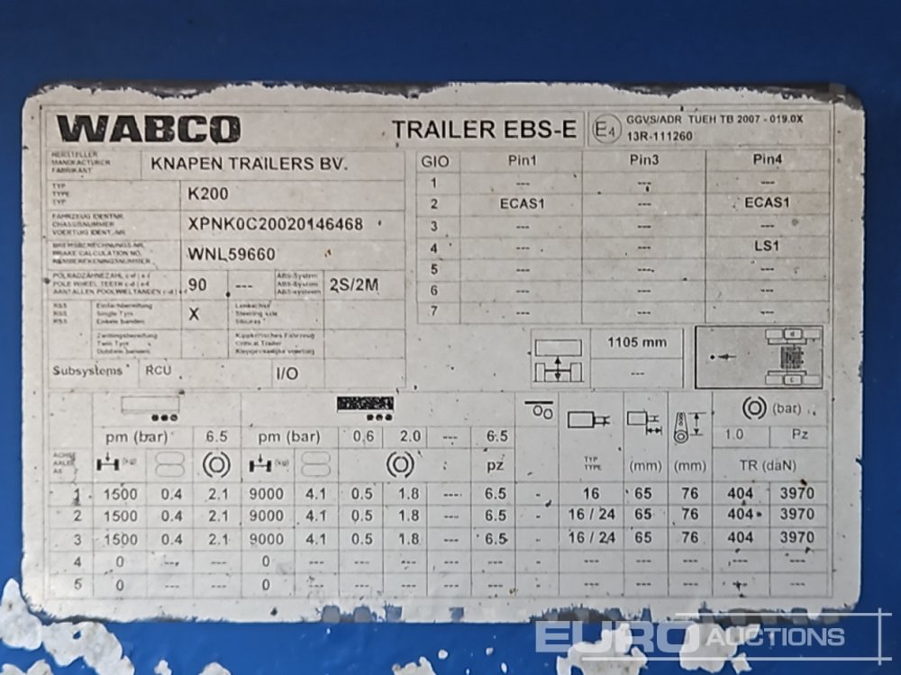 2014 Knapen Tri Axle Walking Floor Trailer, Eay Sheet (Tested 04/27) - XPNK0C20020146468