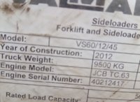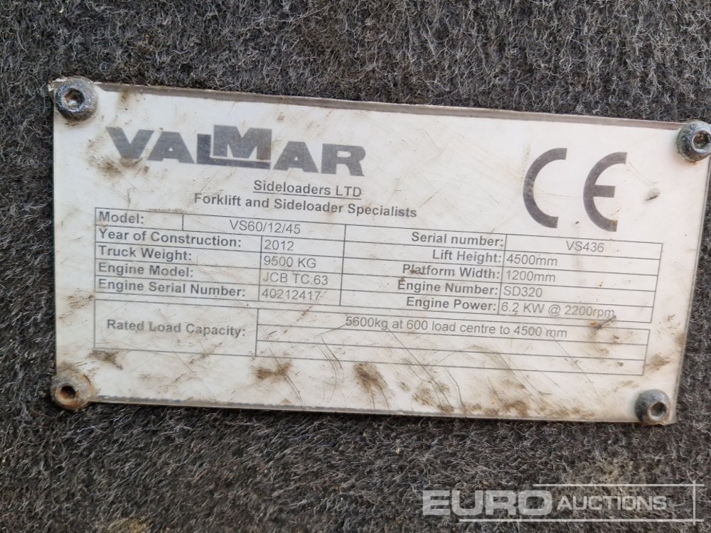 2012 Valmar VSH60/12/45 Diesel Side Loader Forklift, 2 Stage Mast, Forks - VS436
