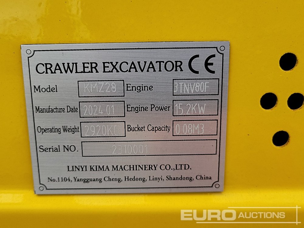 2024 Kima KMZ28 Rubber Tracks, Blade, Offset, QH, Piped (Meter Reading: 11 Hours) - 2310001
