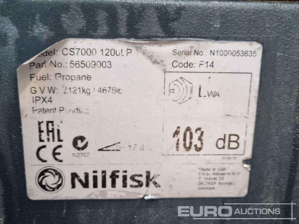 Nilfisk CS7000 Hybrid Gas/Electric Ride on Sweeper, Charger (Meter Reading: 91 Hours) - N1000053635