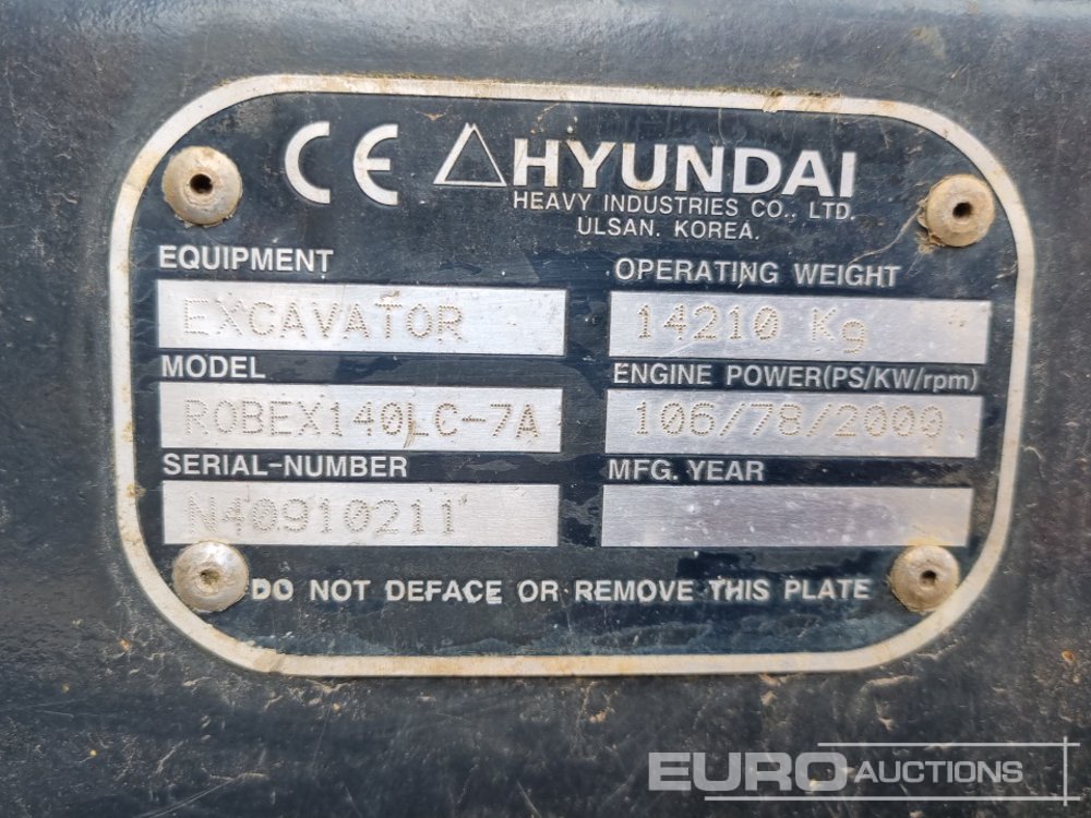 Hyundai Robex R160LC-7A 700mm Pads, CV, QH, Piped, A/C - N40910211