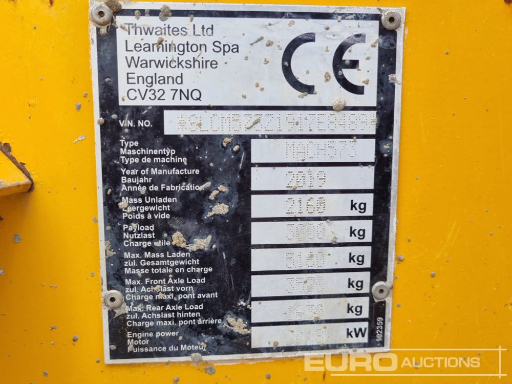 2019 Thwaites 3 Ton Swivel Skip Dumper, Roll Bar - SLCM573Z1917E8489