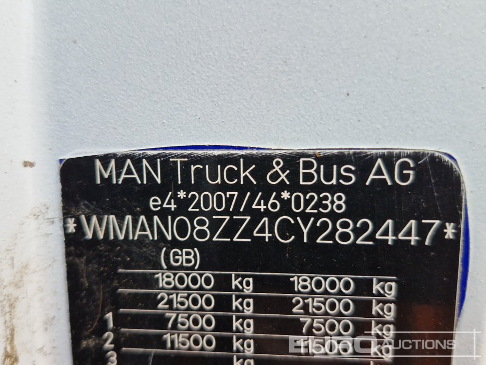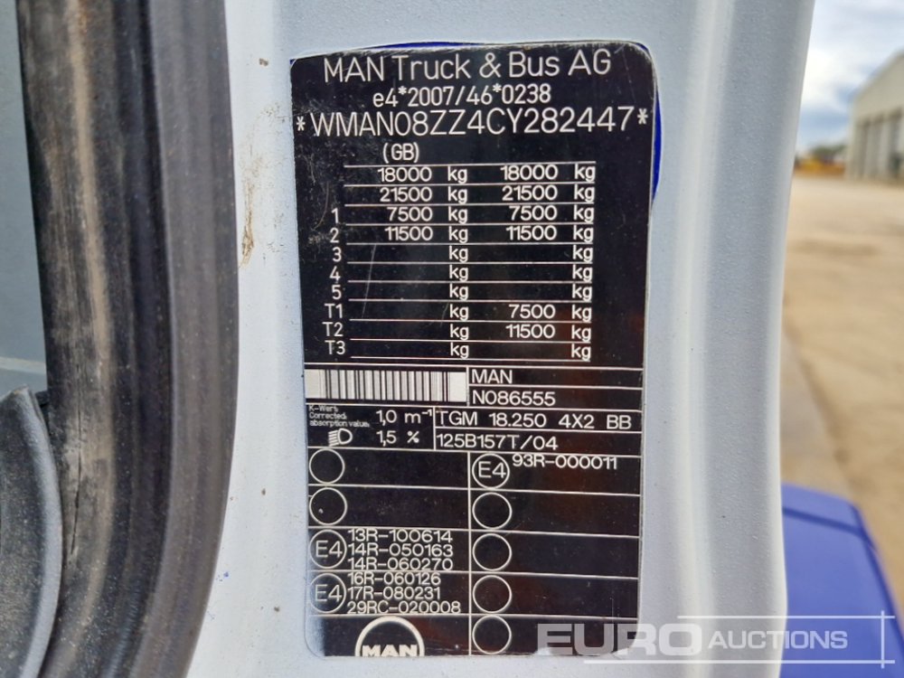 2012 MAN TGM18.250 4x2 Chassis Cab, Manual Gearbox (Reg. Docs. Available (Category S Insurance Loss) - DE12 NLN - WMAN08ZZ4CY282447