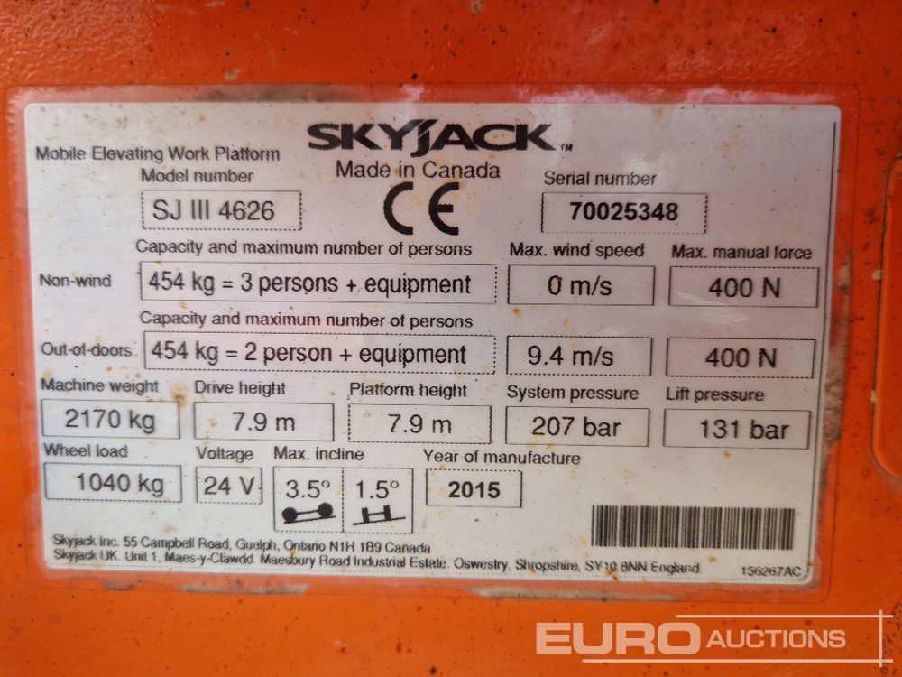 2015 SkyJack SJ111-4626