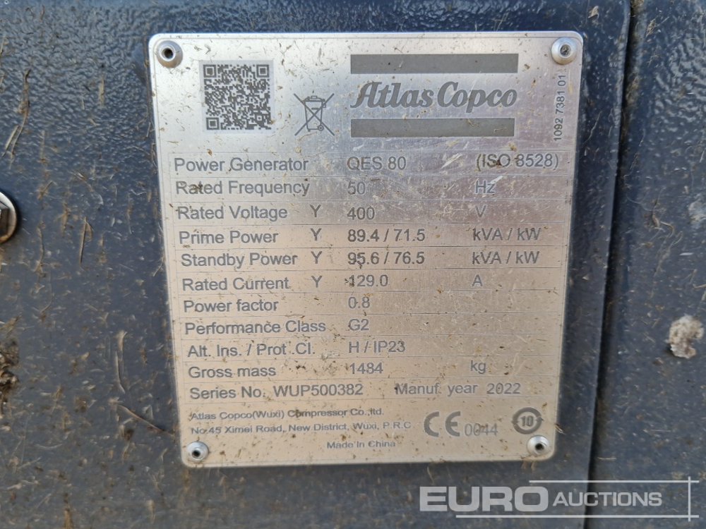 Unused Atlas Copco QES80 CUD 50HZ 400V3PH CE SV2 Static Diesel Generator, DSE 4620 control system, emergency power controller, coolant heater, battery charger, terminal block for individual plug configuration - WUP500382