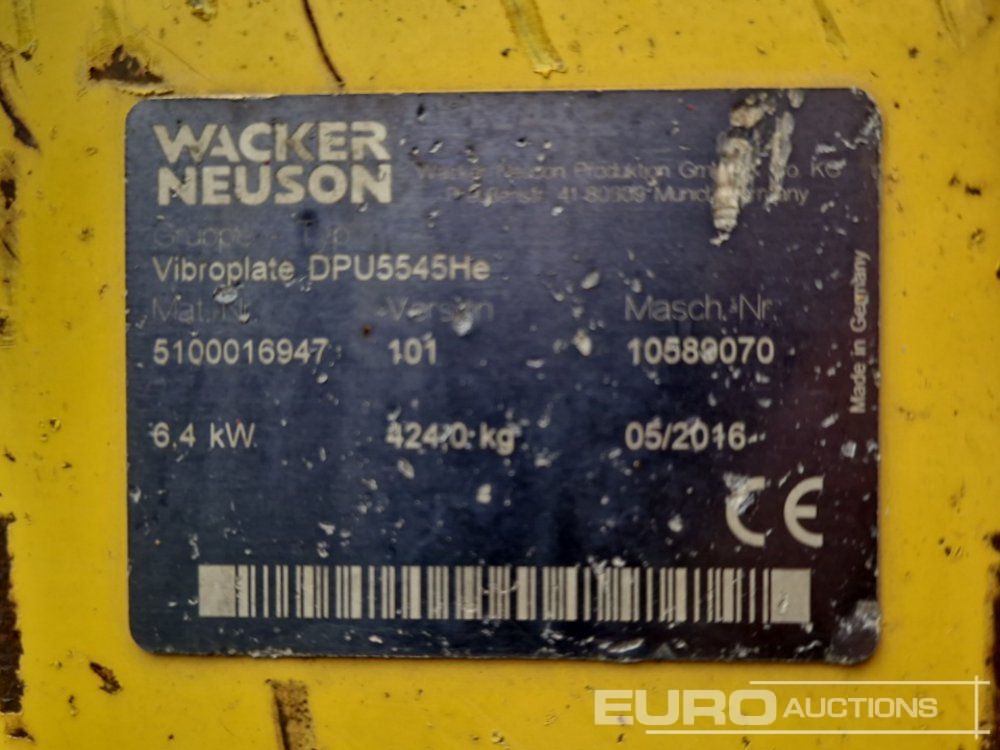 2016 Wacker Neuson DPU5545HE Diesel Vibrating Compaction Plate - 10589070