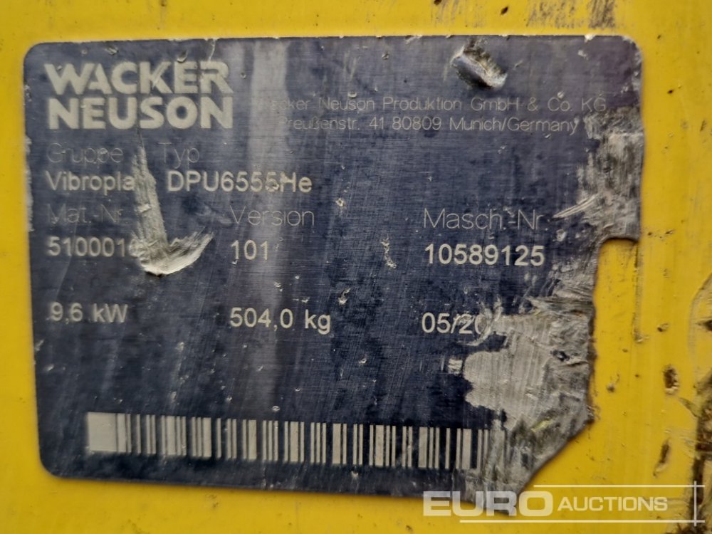 2016 Wacker Neuson DPU6555 HE Diesel Vibrating Compaction Plate - 10589125
