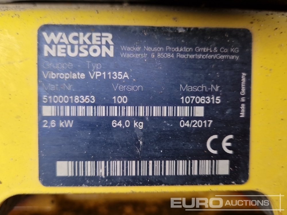 2017 Wacker Neuson VP1135A