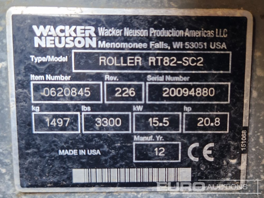 2012 Wacker Neuson RT82-SC2 Double Drum Padfoot Roller (Remote in Office) - 20094880