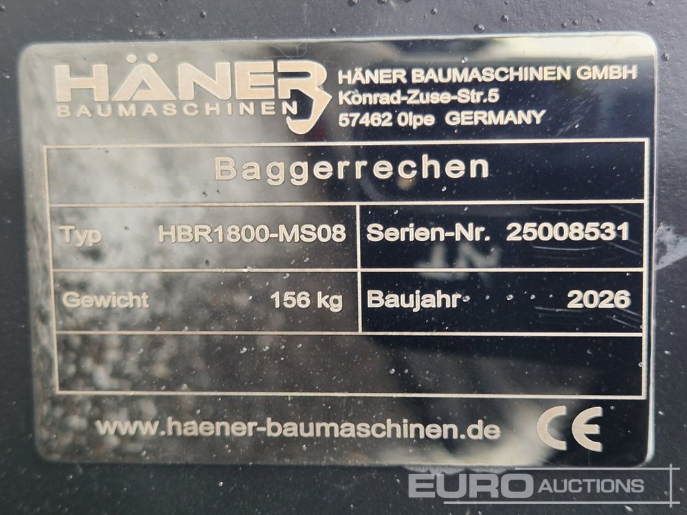 Unused Häner HBR1800 1800mm Lifting Rake to suit MS08 - 25008531