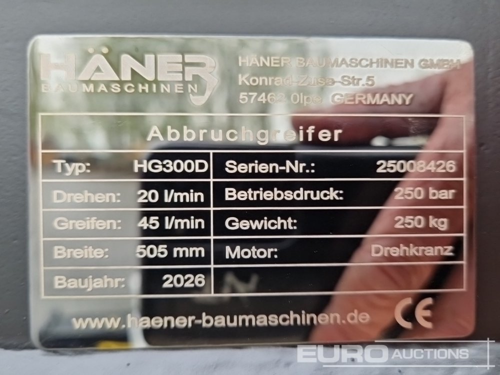 Unused 2026 Häner HG300D 20" Hydraulic Rotating Sorting Grapple - 25008426