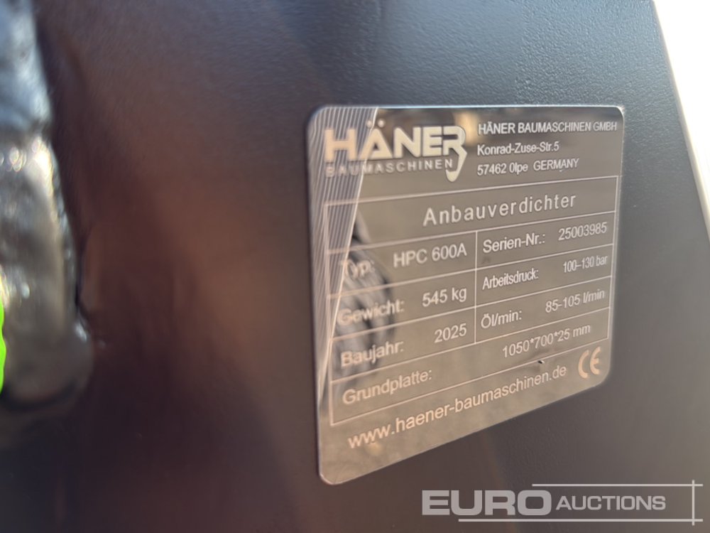 Unused 2025 Häner HPC600A Hydraulic Compactor to suit 10-15 Ton Mini Excavator (Copy of Declaration of Conformity Available / Copia de CE Disponible) / Compactador Hidraúlico para Excavadora de 10-15 Toneladas - 25003985