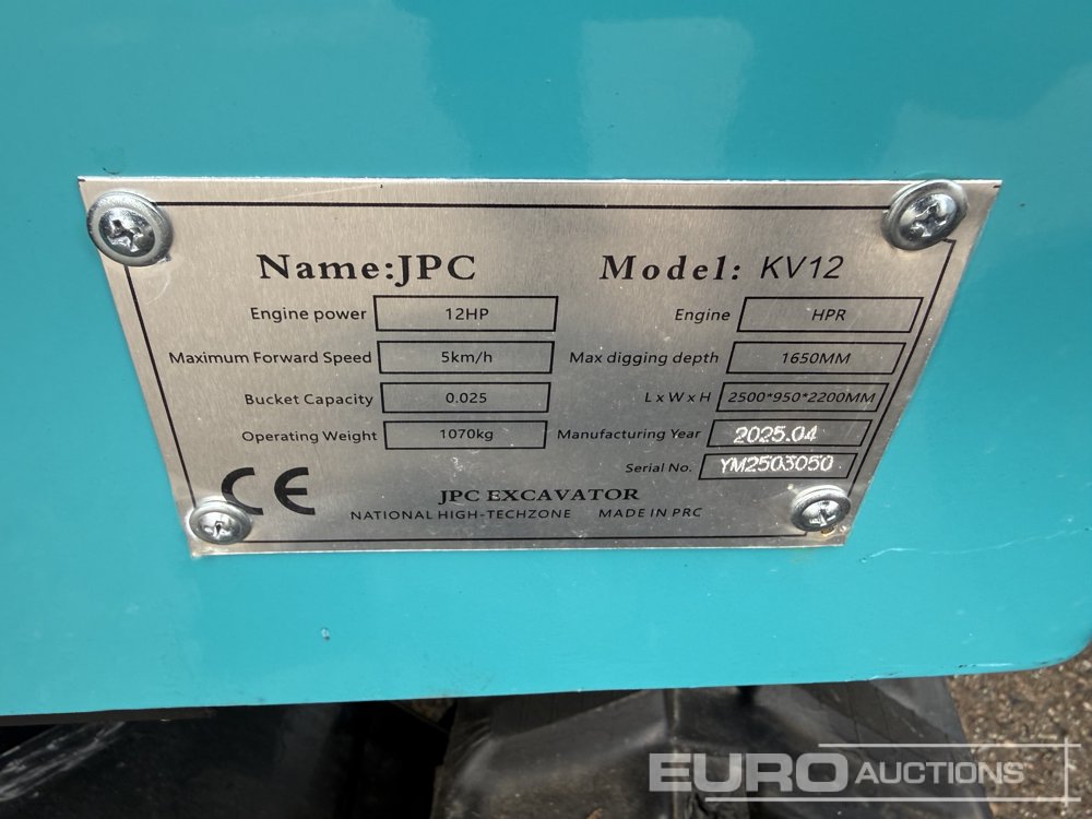 Unused 2025 JPC KV12 Rubber Tracks, Blade, Piped, Bucket / Cadenas de Goma, Hoja Dozer, Instalación Hidraulica, Cazo - YM2503050