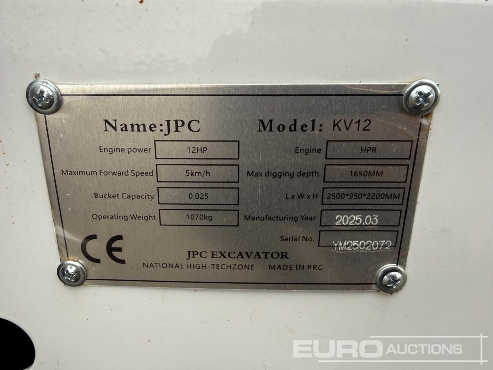 Unused 2025 JPC KV12 Rubber Tracks, Blade, Piped, Bucket / Cadenas de Goma, Hoja Dozer, Instalación Hidraulica, Cazo - YM2502072