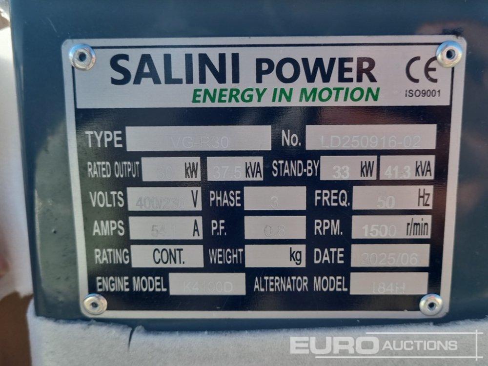 Unused Salini VG-R30 41.3KvA Generator, 4 Cylinder Engine / Generador Estático - LD25091602