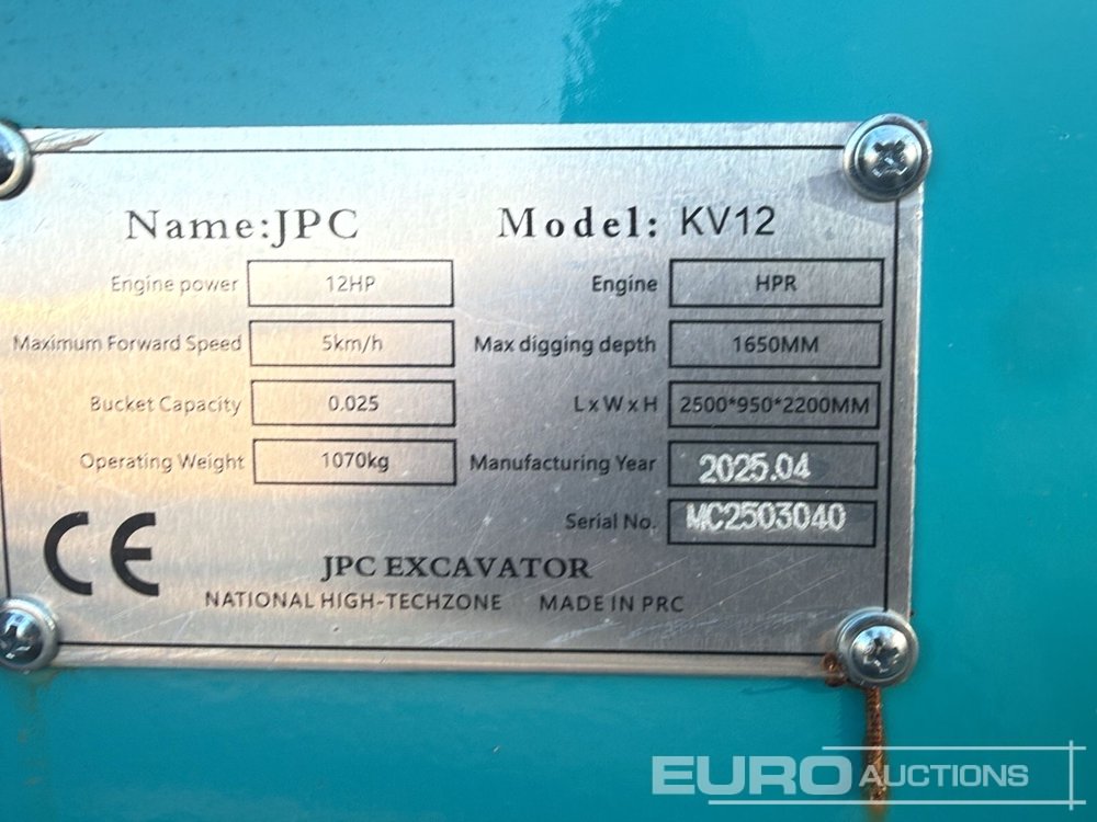 Unused 2025 JPC KV 12 Rubber Tracks, Blade, Piped, Bucket / Cadenas Goma, Hoja Dozer, Instalación Hidráulica, Cazo - MC2503040