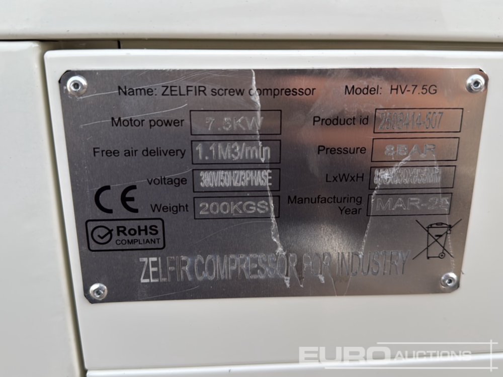 Unused Zelfir HV-7.5G 7.5Kw Zelfir Screw Compressor / Compresor - 2508414507