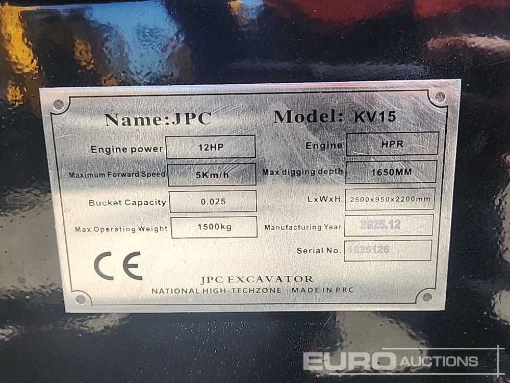 Unused 2025 JPC KV15 Rubber Tracks, Blade, Piped, Bucket (Third Party Certificate of Conformity Available) - 1625126