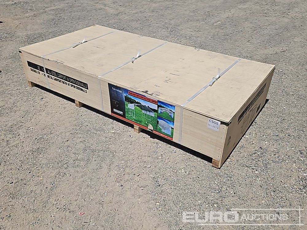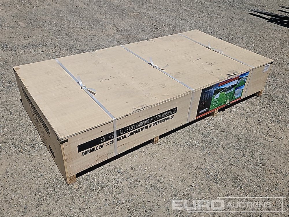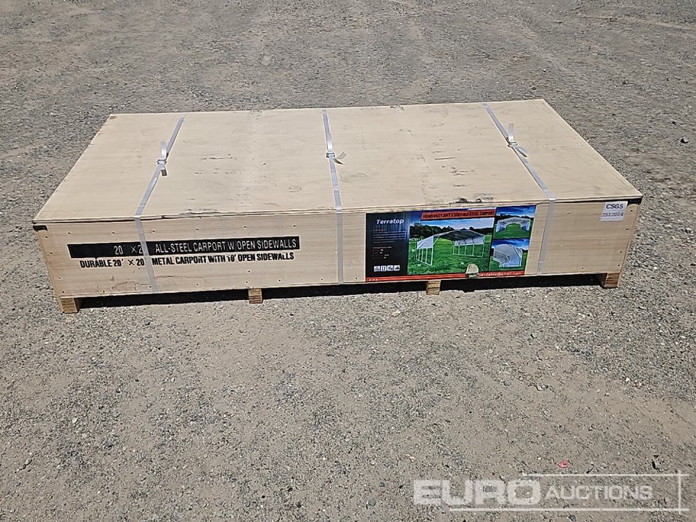Unused 2025 Terratop MSC2020F 20x20x12' All-Steel Carport c/w Enclosed Sidewalls - CSGS2512012