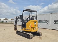 2022 John Deere 26G Excavator, OROPS, Rubber Tracks, Blade, Swing Boom, Aux Hydraulics, Bucket (Meter Reading: 2844 Hours) - 1FF026GXLNK267908