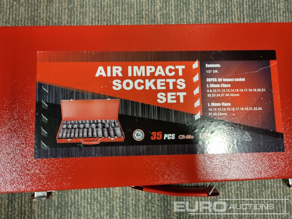 Unused 35 Piece 1/2" Drive Air Impact Socket Set, Steel Case