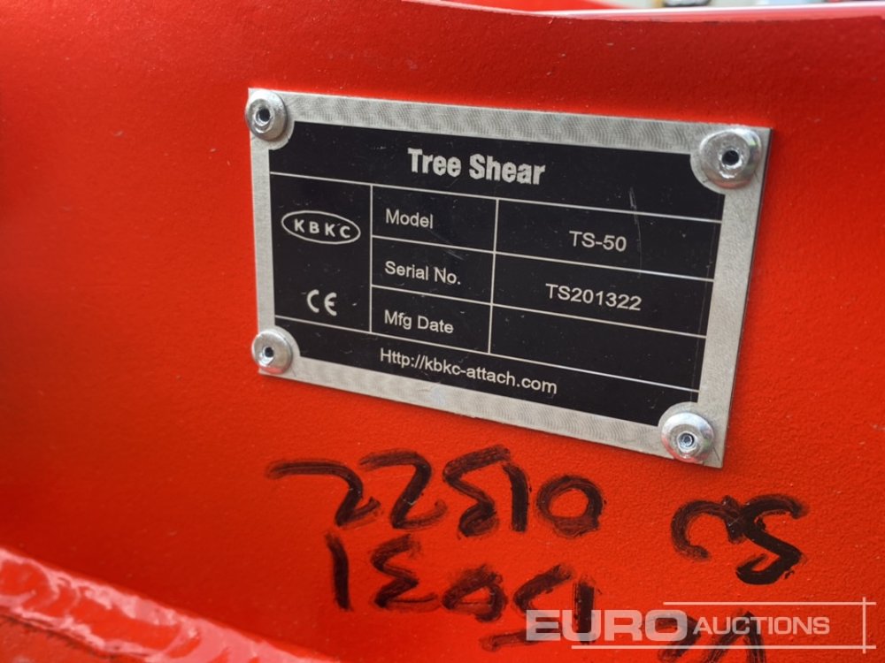 Unused KBKC TS-50 Hydraulic Tree Shear 50mm Pin to suit 6-8 Ton Excavator - TS201322