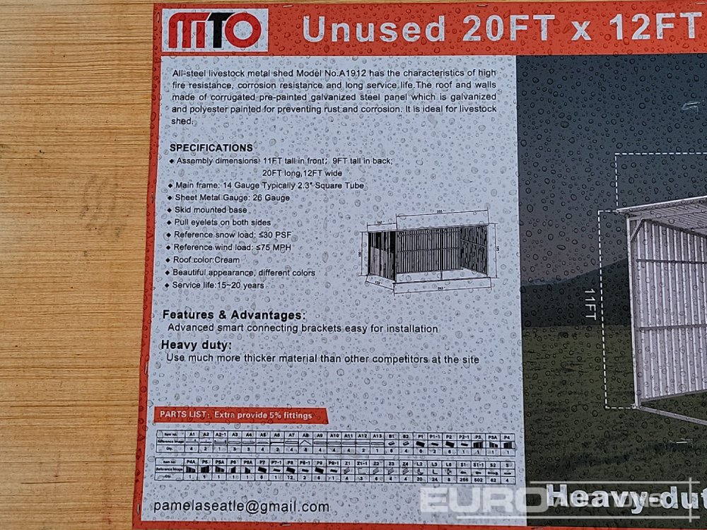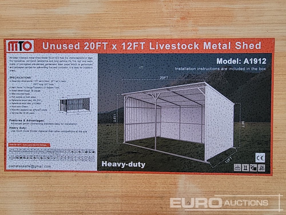 Unused 2025 MTO A1912 20'x12' Livestock Metal Shed - 100355701