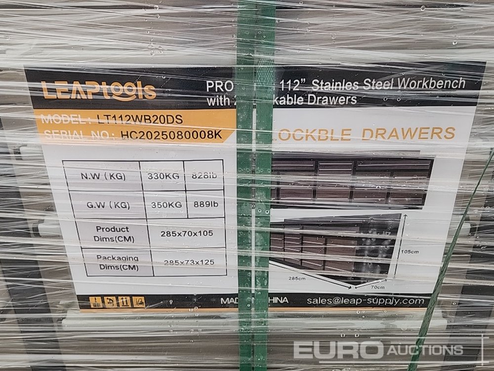 Unused 2026 LEAPTOOLS LT112WB20DS 112" 20 Drawer Work Bench - HC2025080008K