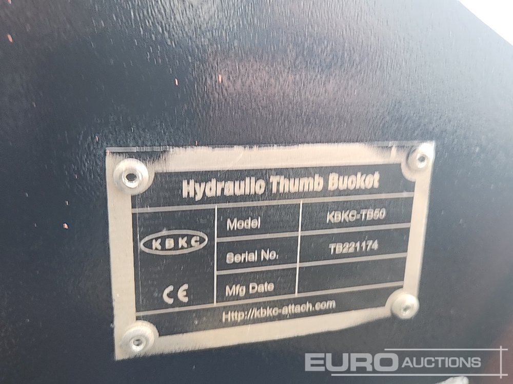 Unused KBKC HTB-50 Hydraulic Thumb Bucket, 50mm Pin to suit 6-8 Ton Excavator - TB221174