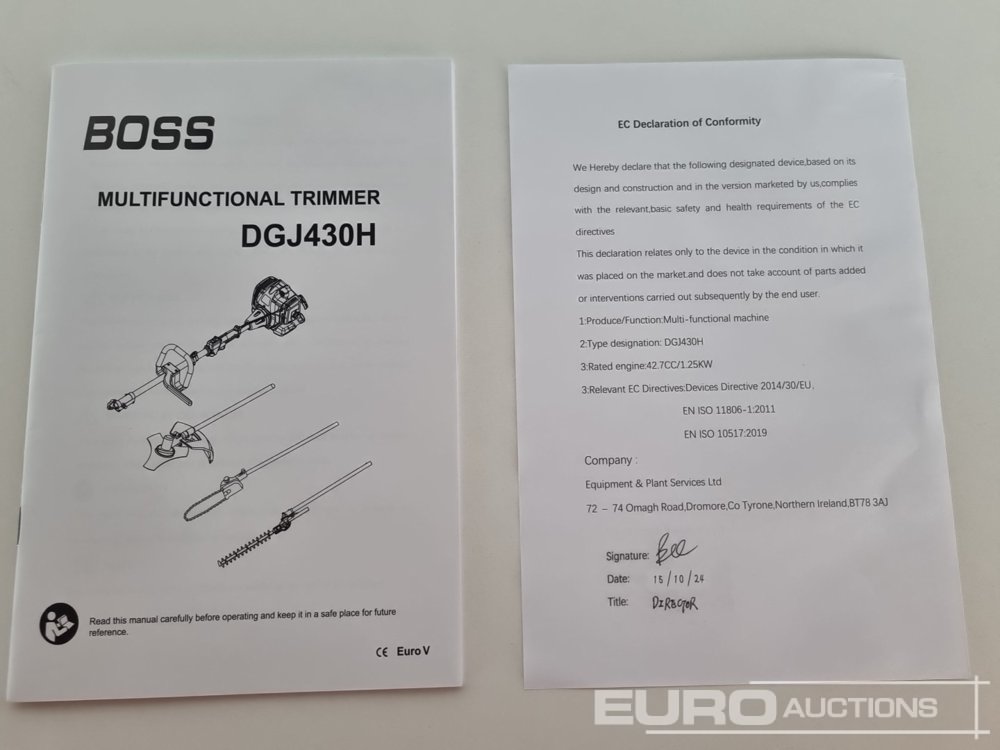 Unused Boss DGJ430H Petrol Multi Function 4 in1 Garden Tool (Strimmer, Pole Saw, Hedge Trimmer, Brush Cutter) with Shoulder Strap - 100361486