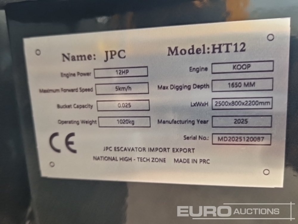 Unused 2025 JPC HT12 Rubber Tracks, Blade, Piped - MD2025120087