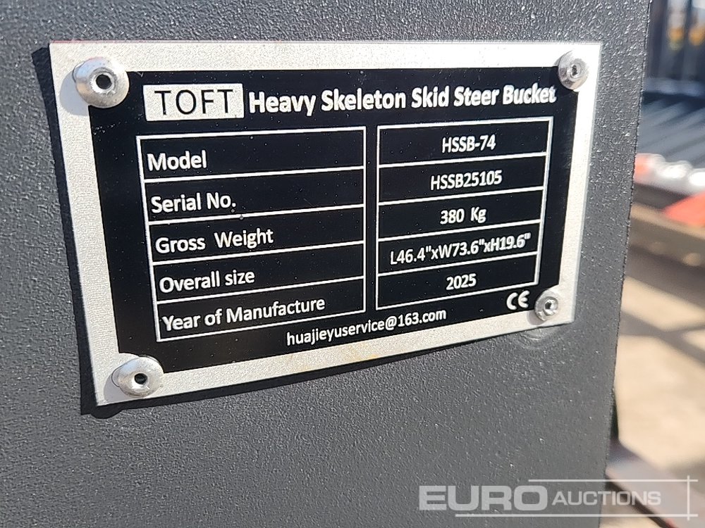 Unused Toft HSSB-74 74" Skeleton Bucket to suit Skidsteer Loader - 100362032