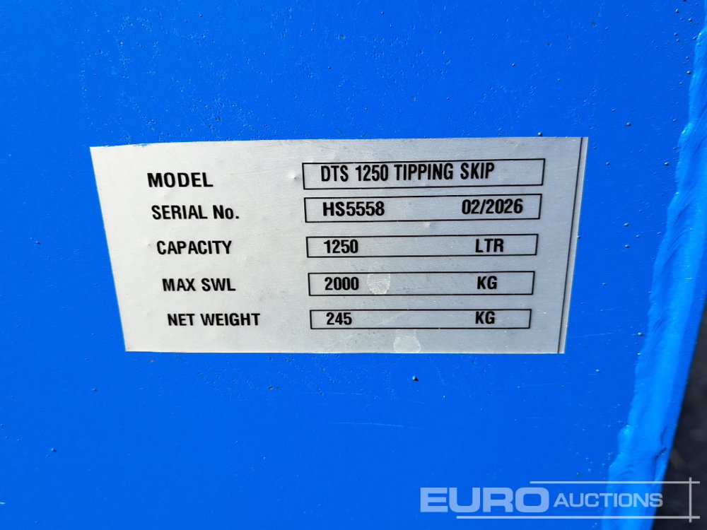 Unused Sjp Co 1250 Litre Tipping Skip to suit Forklift - 100363011