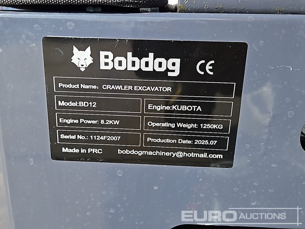 Unused 2025 Bobdog BD12 Rubber Tracks, Blade, Offset, Piped, Hydraulic Thumb, Expanding Undercarriage - 1124F2007