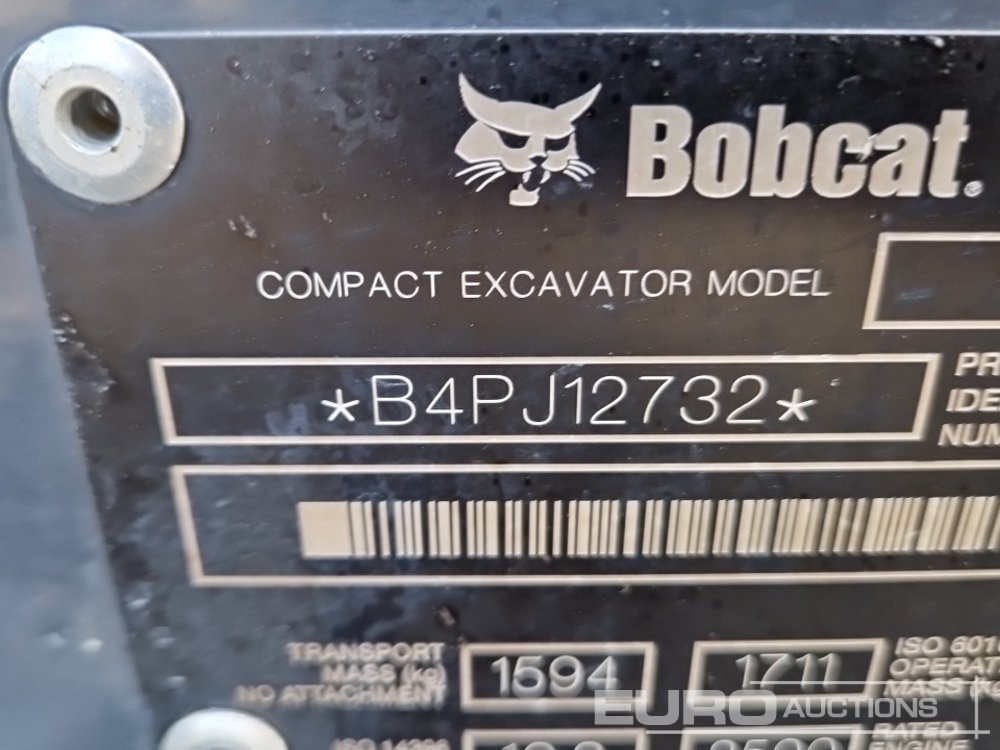 2022 Bobcat E17 Rubber Tracks, Blade, Offset, QH, Piped, Expanding Undercarriage (Meter Reading: 202 Hours) - B4PJ12732