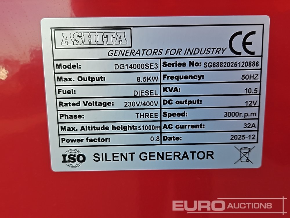 Unused 2025 Ashita Power DG14000SE3