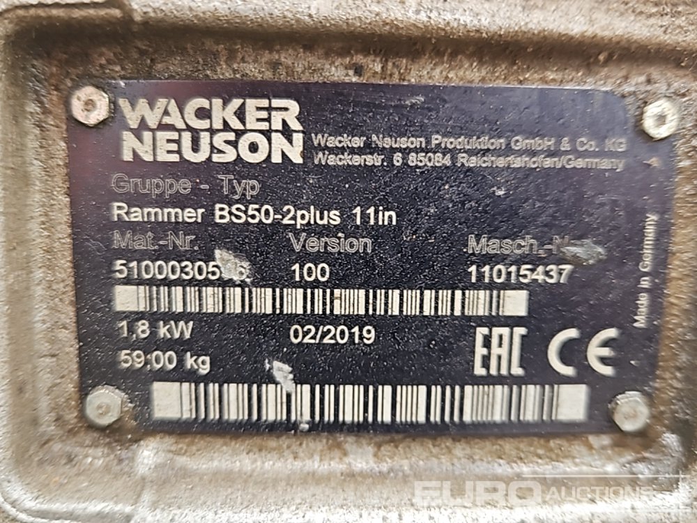 2019 Wacker Neuson BS50-2+ Petrol Trench Compactor - 11015437