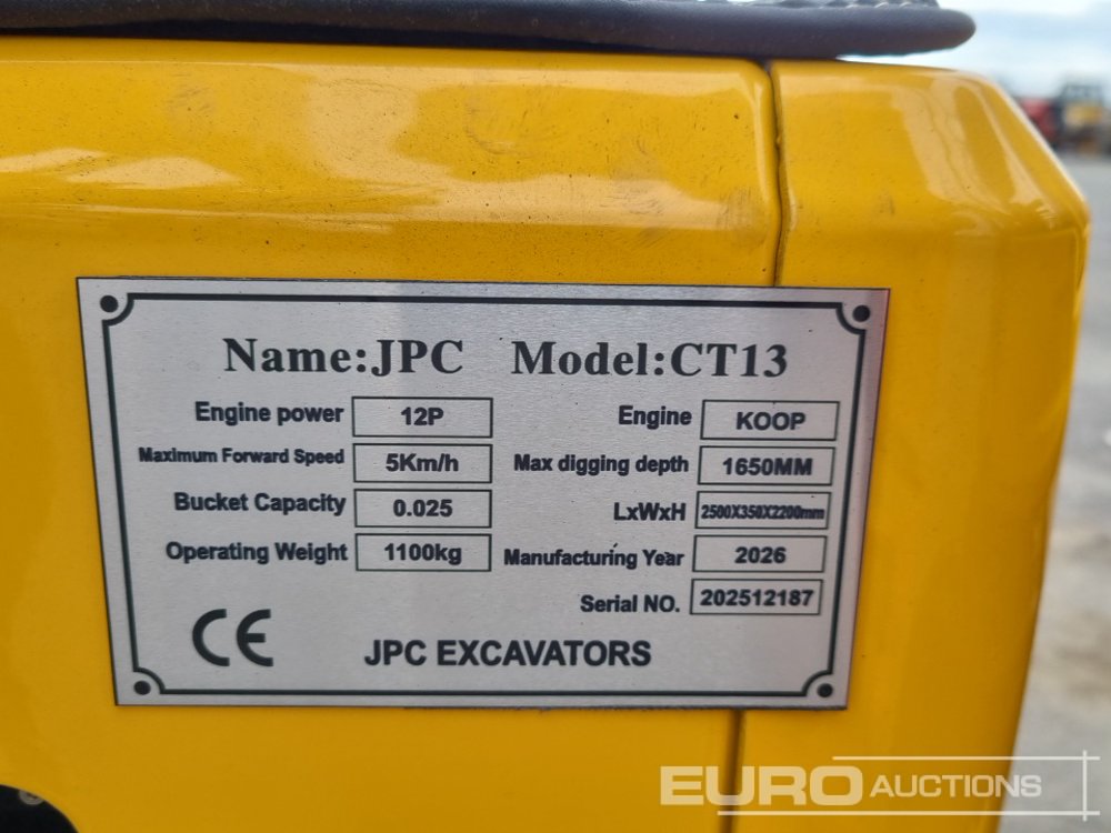 2026 JPC CT 13 Rubber Tracks, Blade, Piped, Bucket - 140527540
