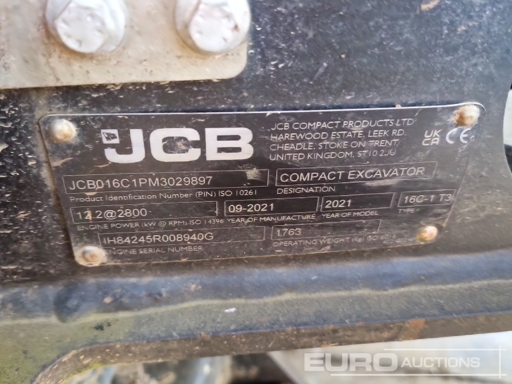 2021 JCB 16C-1 T3 Rubber Tracks, Blade, Offset, QH, Piped, Expanding Undercarriage (Meter Reading: 803 Hours) - JCB016C1PM3029897